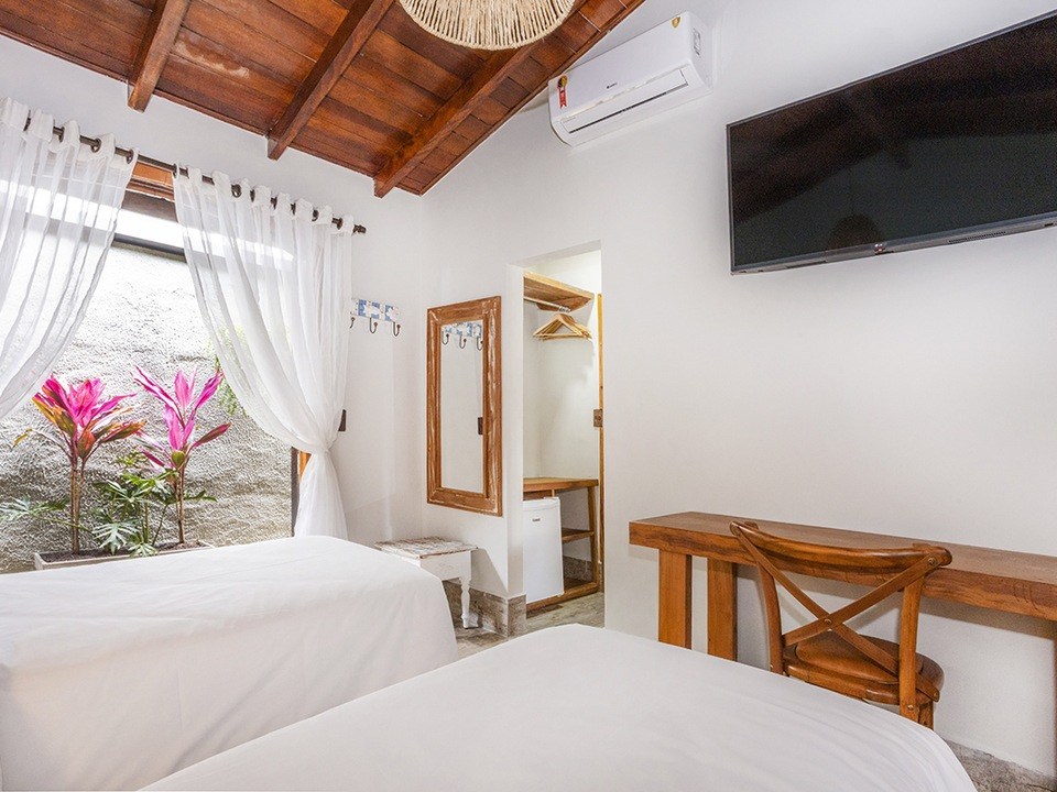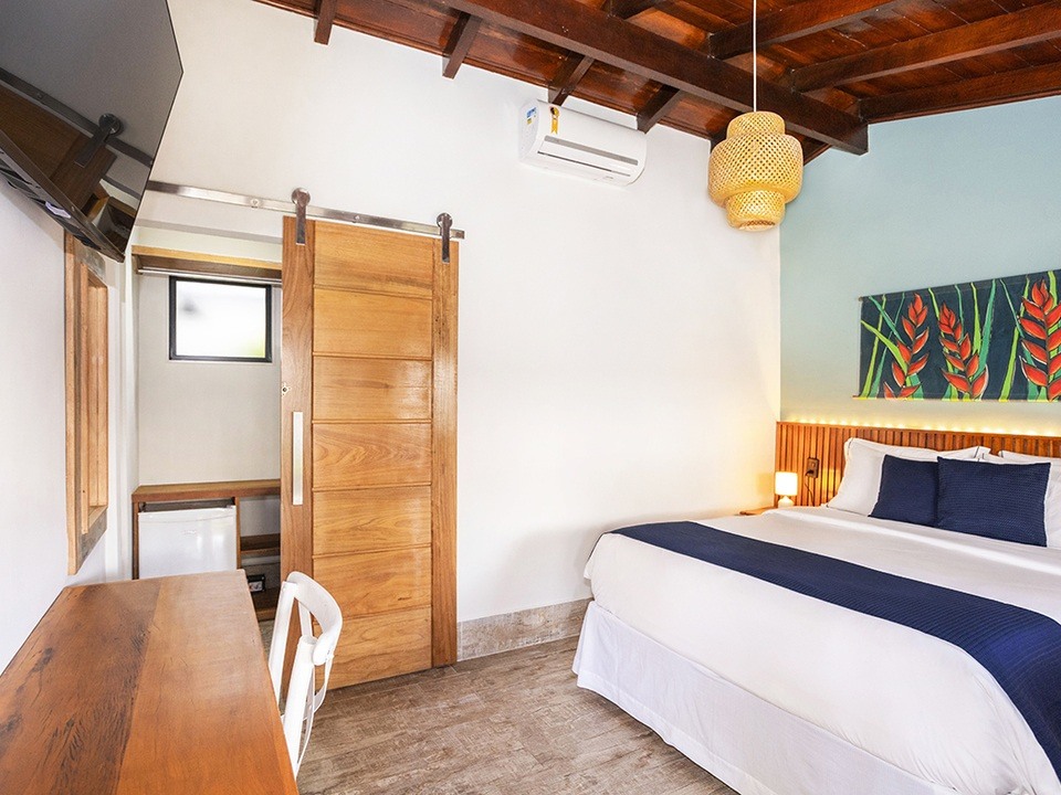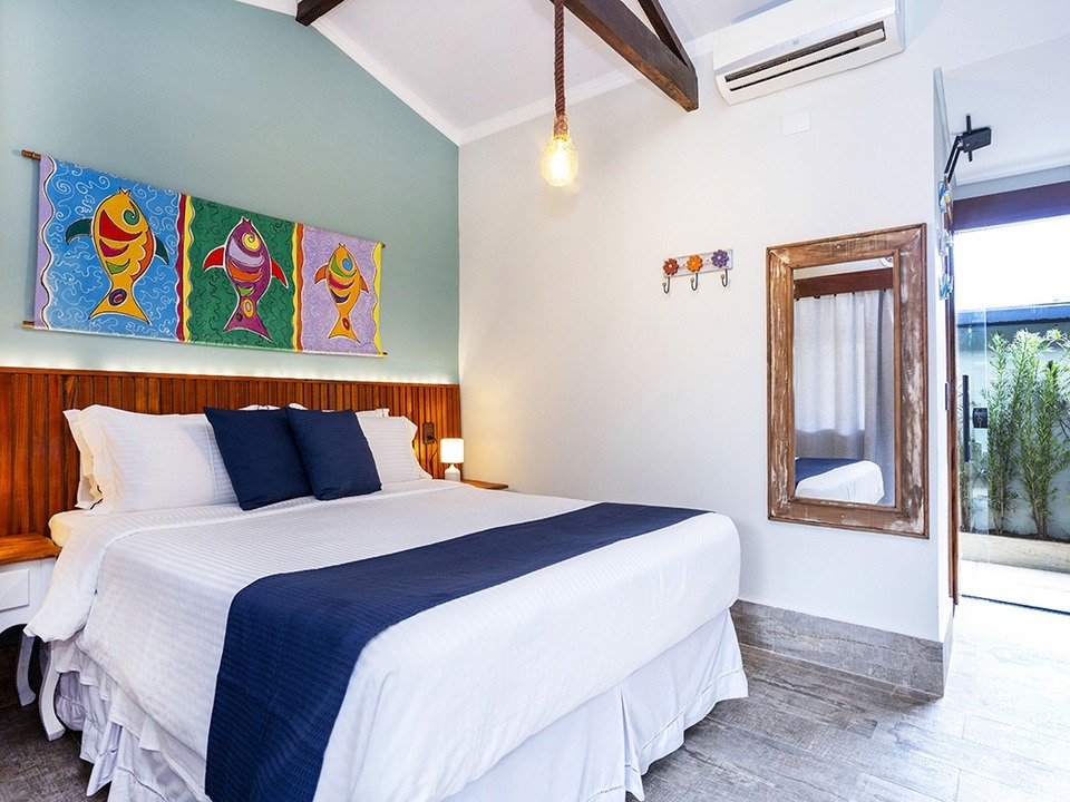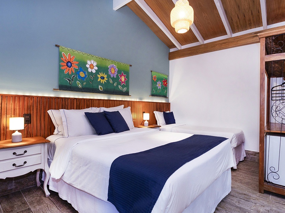 Esta categoria caracteriza-se pela localização térrea, na área do jardim interno. A Suíte Casal Garden possui os ambientes integrados e juntamente com a decoração charmosa tornam-na aconchegante para o casal. Suíte com aproximadamente 16 m2, frente ao corredor do jardim, equipadas com TV smart, ar-condicionado split, frigobar, ducha e secador de cabelo. Possui 1 cama de casal queen size.